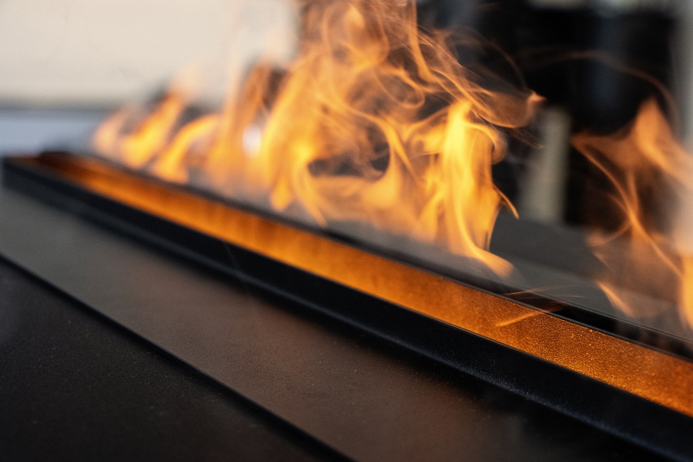 The fireplace employs advanced technology to atomise water and convert it into vapour. The mist is electronically controlled and illuminated by integrated LED lights, creating the illusion of real flames. The LED lights are positioned on both sides of the burner, providing a natural flame effect.