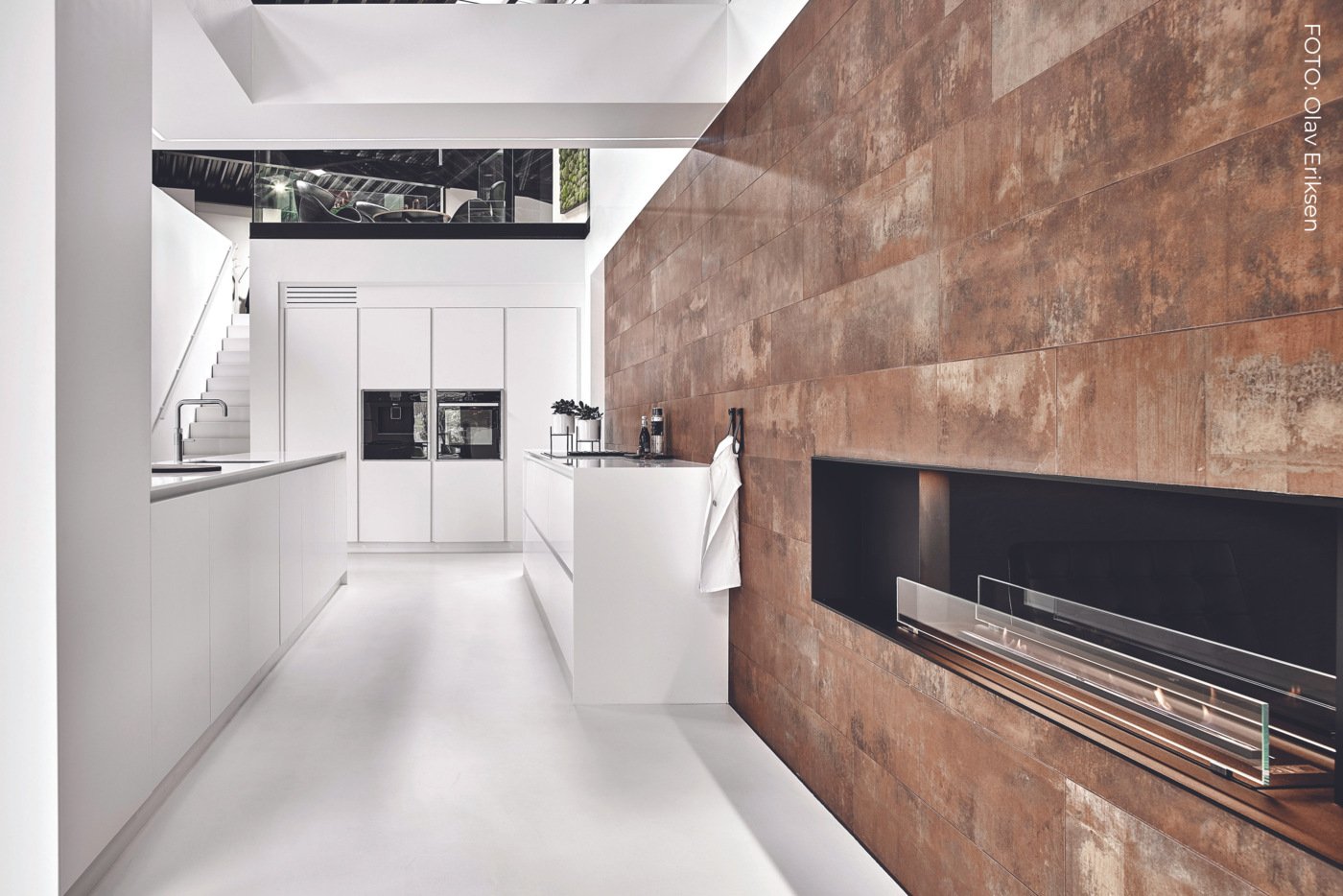 A built-in biofireplace open on both the front and back, designed for wall integration.