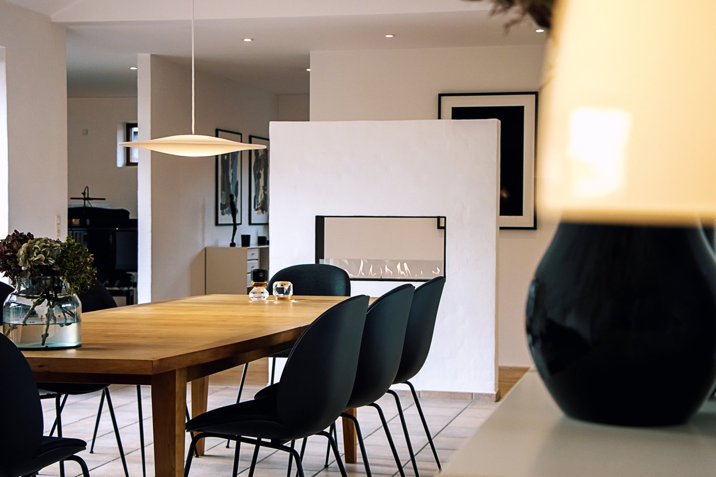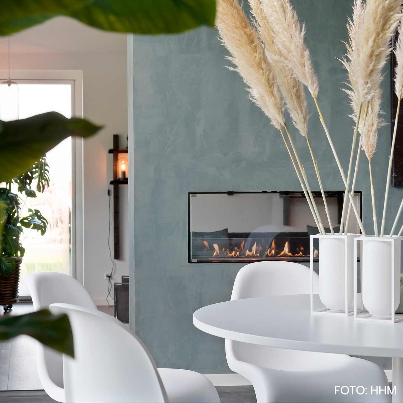 One of Decoflame's most popular built-in fireplaces for both bioethanol and Hybrid Mist. Perfect for viewing from both the kitchen and the living room – how convenient!