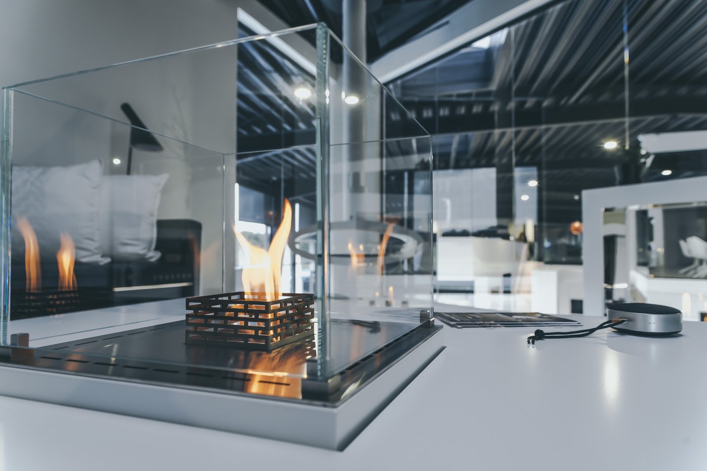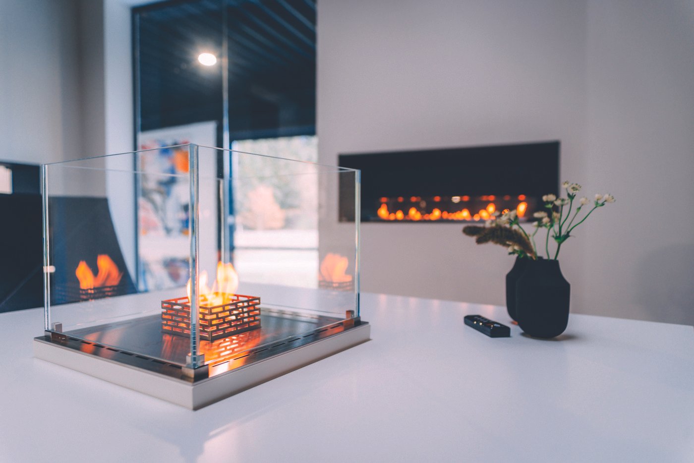 Our range of built-in bio burners, Nice Built-in, can be integrated into flat surfaces such as countertops, window sills, or half-walls – or function as an integral part of a piece of furniture.