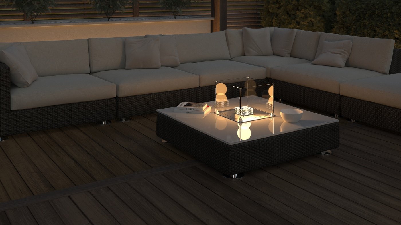 Compact sizes with great effect. This quality drop-down bio fireplace is available in various sizes and is perfect for both indoor and outdoor use.