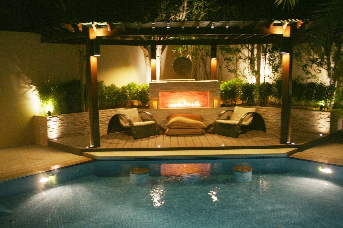 Overall, this built-in bio fireplace is the perfect blend of aesthetics, functionality, and eco-friendliness, elevating any outdoor space to new heights.